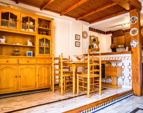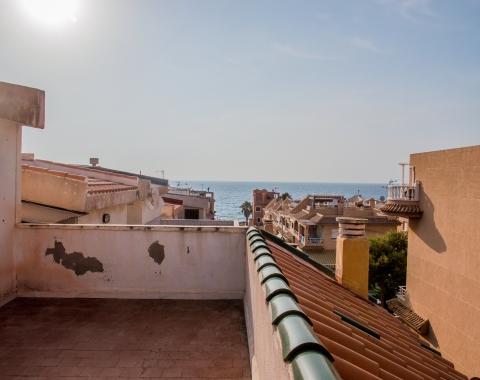 Unique opportunity! Townhouse in traditional style with very character only a stone's throw from the Mediterranean Sea. Outside the entrance there is a small terrace, perfect for the morning coffee. As you walk through the double wooden door you will meet the open living room and the kitchen with fine wooden beams and patterned tiles. On this floor there is also a bathroom. Upstairs there are 2 bedrooms and a spacious bathroom. At the top there is a roof terrace with barbecue and stunning sea views. The house is swung to the south so you can enjoy the sun from morning to evening. To the nearest beach it is only approx. 100 meters and to the popular La Mata beach it is 800 meters. This house gives a real Mediterranean feeling!