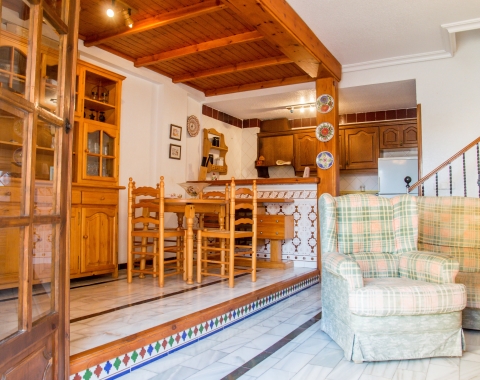 Unikt tillfälle! Townhouse i traditionell still med mycket karaktär endast ett stenkast från Medelhavet. Utanför ingången finns en liten terrass, perfekt för morgonkaffet. När man går in genom den dubbla trädörren möts man av det öppna vardagsrummet och köket med fina träbalkar och mönstrade kakel. På denna våning finns också ett badrum. En våning upp finns 2 sovrum och ett rymligt badrum. Högst upp finns en takterrass med grill och fantastisk utsikt över havet. Huset är svängt mot söder så du kan njuta av solen från morgon till kväll. Till närmaste strand är det endast ca. 100 meter och till den populära La Mata stranden är det 800 meter. Detta hus ger en riktig medelhavskänsla!