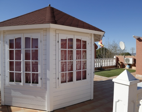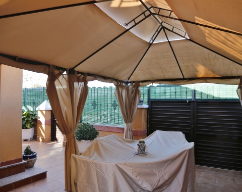 Villa (Chalet) with large exterior surfaces both ground and roof terrace with gazebo.